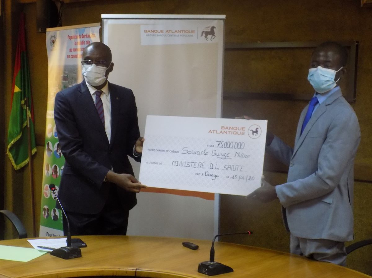 Banque Atlantique, filiale du Groupe Banque Centrale Populaire (BCP) du Maroc, a fait des dons en espèces et en nature pour un montant total de 75 millions de FCFA, dédiés au Burkina Faso, dans le cadre de la lutte contre le COVID-19. Outre, un chèque de 45 millions de FCFA, cette quote-part est également composée de matériels et consommables réactifs, d’une valeur de 30 millions de FCFA.