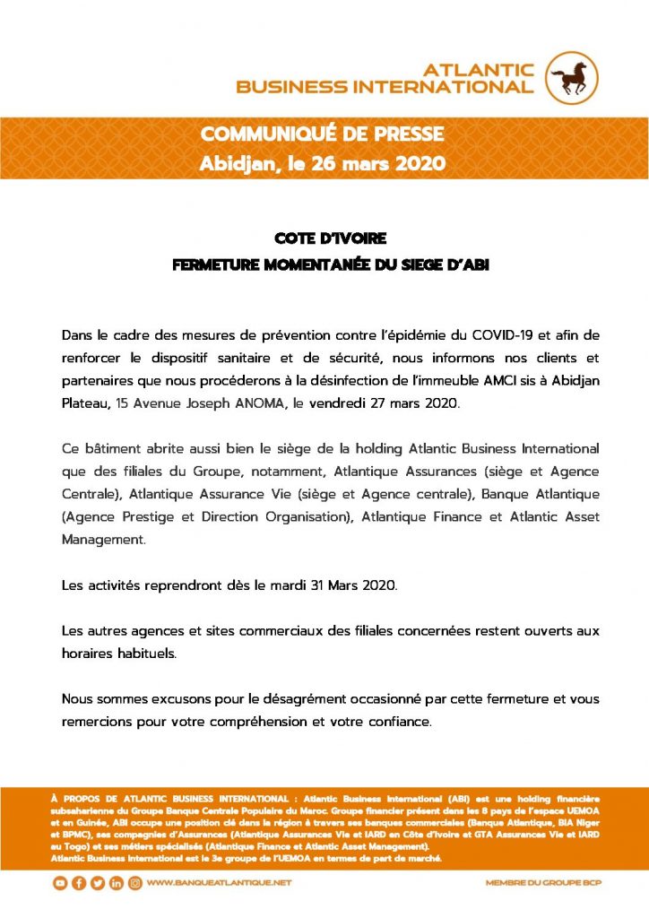 Cher client, L’actualité sanitaire mondiale est marquée par la maladie à Coronavirus (COVID-19), par ailleurs qualifiée de pandémie par l’Organisation Mondiale de la Santé (OMS) depuis le mercredi 11 mars dernier. La quasi-totalité des pays à travers le monde est touché par ce virus. Nous espérons que la propagation sera […]