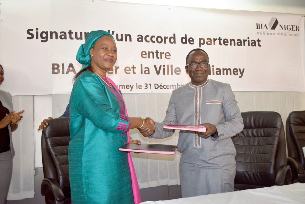 La cérémonie marquant la signature de convention entre la banque et la ville de Niamey s’est déroulée en présence de M. le Président de la Délégation Spéciale et du Directeur Général de la BIA Niger Mme Ango Nana Aissa.