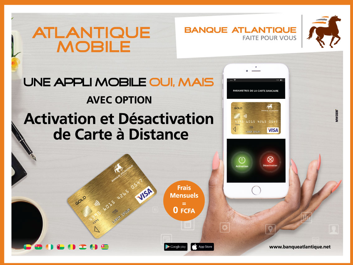 Avec l’application Atlantique Mobile, le client peut personnaliser et gérer vos cartes bancaires en toute liberté tout en bénéficiant des services associés